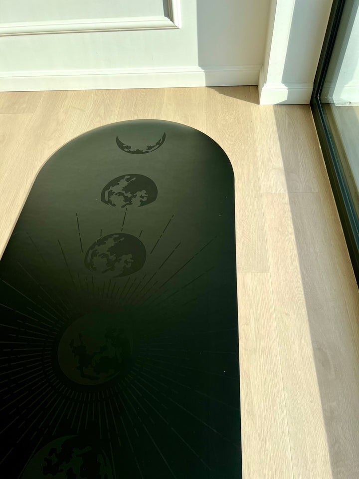 Jej czarna, minimalistyczna powierzchnia symbolizuje czystość, spokój i nowy początek, a subtelna grafika faz księżyca przypomina, że każda chwila na macie to część Twojego cyklu – ruchu, odpoczynku, odrodzenia.